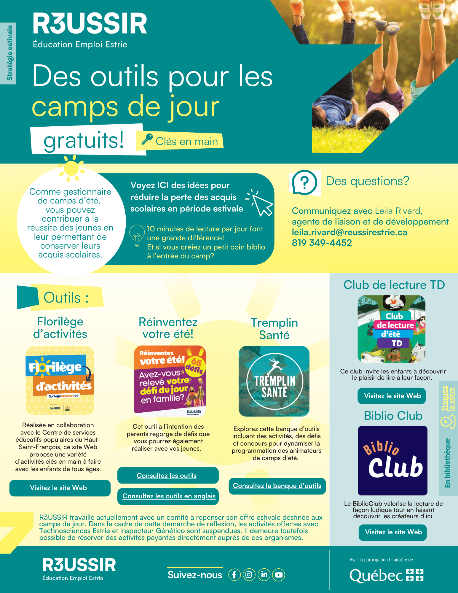 - Sensibiliser et outiller les partenaires à l’importance de maintenir les acquis durant l’été.